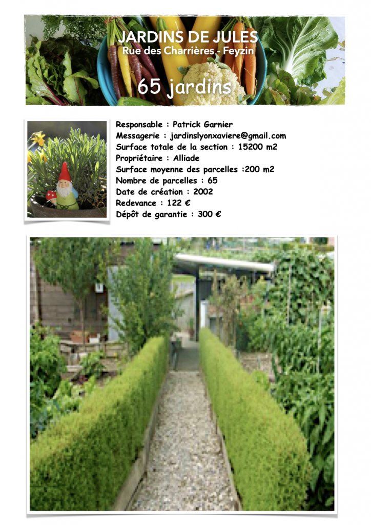 Surtout qu’à ce jour,  les jardins du Lyonnais et de la Xavière comprennent 25 sections de 8 à 130 jardins soit plus de 1000 jardins.